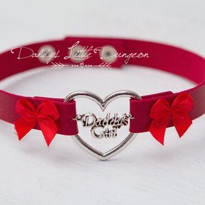 Red Daddy's Girl choker or day collar. Perfect for cosplay, goth, gothic lolita, alt and alternative, punk, emo and lgbtq styled outfits!
