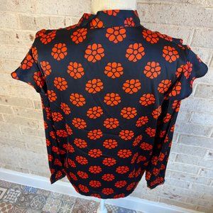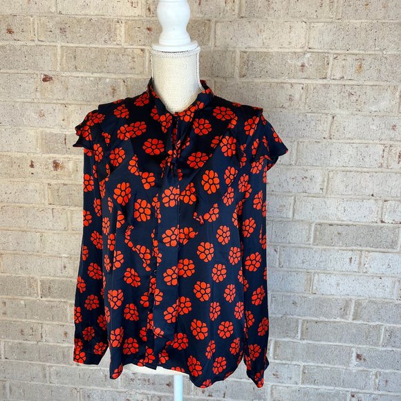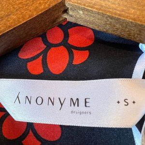 New, Perfect Condition, Size Small/4, Anonyme Designers, Navy Blue, Red, Ruffles, Long Sleeve, High Quality, Luxury Brand, Designer Wear, Casual, One of a Kind, Unique, Classic, Modern, Business, Suit, Upscale, Trendy, Business Professional, Daytime Attire, Even Attire. 100% Polyester.