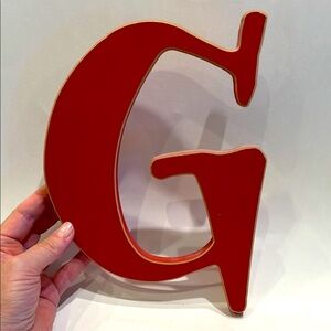 Stylish red decorative letter G. Perfect for home decor or personalizing spaces. 9.5 inches tall X 7 inches wide X 14 inch deep.
