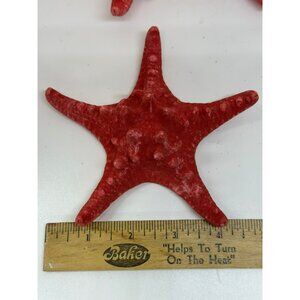 Bring the beauty of the ocean to your home with this stunning set of 8 red decorative starfish. Each approximately 5" starfish features a realistic textured finish, perfect for enhancing your coastal, beach, or nautical-themed decor.