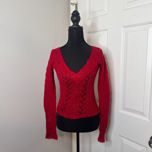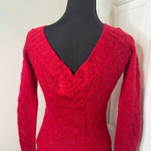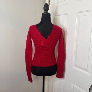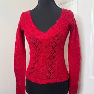Red Deep V Neck Sweater by One Step Up, Size Medium