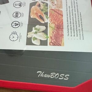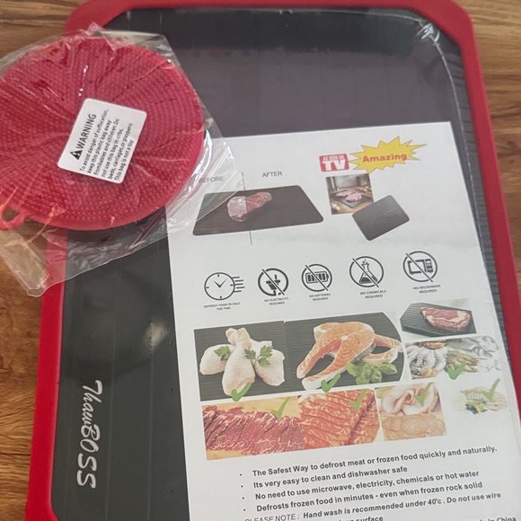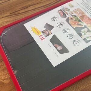 Efficiently defrost your frozen foods with the Red Defrosting Tray. This innovative tray ensures quick and safe thawing without the need for electricity or chemicals. Easy to clean and dishwasher safe, it's a must-have for every kitchen. NWT