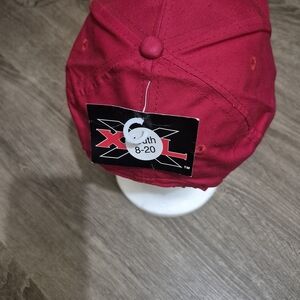 Stylish red cap featuring an embroidered Demons logo. Perfect for adding a bold touch to your outfit.