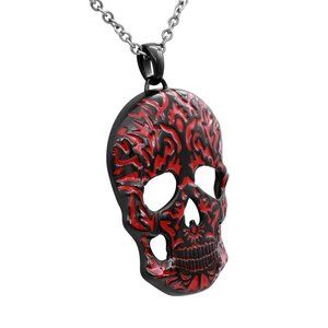 Skulls are often used to ward off evil or at least let people know you don't want to be messed with! This unique tattoo skull design features black ion plating and red epoxy to give it that mysterious sheen.