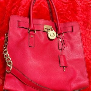 Elegant red tote bag Michael Kors / with gold accents, perfect for any occasion. Features a stylish design and durable construction.