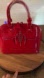 Stylish and vibrant red patent leather purse features custom black and antique white pin striping. The purse has cell phone pocket, sunglasses pockets along with removable shoulder strap.