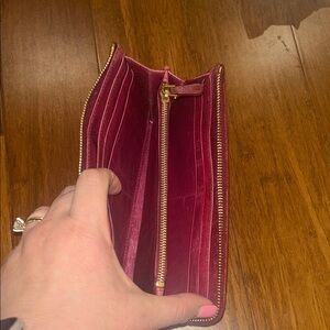 Elegant red wallet with a stylish design. Perfect for adding a pop of color to your accessories.