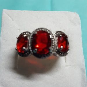 Simulated Red Diamond Ring in Stainless Steel.