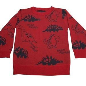 Cozy red sweater with playful dinosaur print. Perfect for adding fun to any outfit. Tag says 5-M - please check measurements shown in pics.