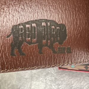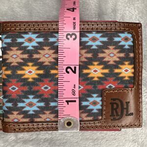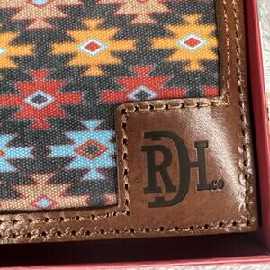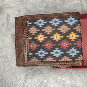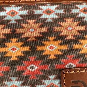 Red Dirt Hat Co Bifold Wallet Leather Southwest Aztec Canvas Inlay Bison Grain
