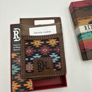 Red Dirt Hat Co Card Case Adult Brown Aztec Genuine Leather Magnetic Clip Wallet
