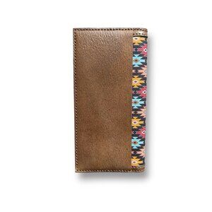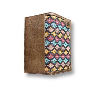 Red Dirt Hat Co Rodeo Wallet Genuine Leather Aztec Print Western Brown Bifold