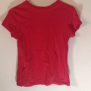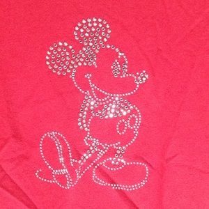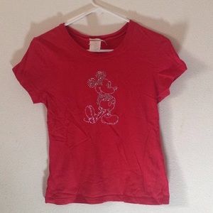 Girls red Disney Mickey Mouse short sleeve tee shirt. Scoop neck. Approx 18 inches from top of scoop neck to the bottom of the shirt. Shoulder to end of sleeve approx 5 inches. No stains rips or tears.