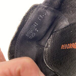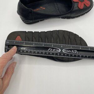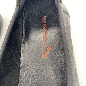 Red Dragonfly Floral Appliqué Black Leather Loafers US Size 5.5, Chinese Sz 225