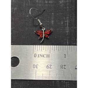 Red Dragonfly Inspired Silver Colored Fish Hook Stud Earring
