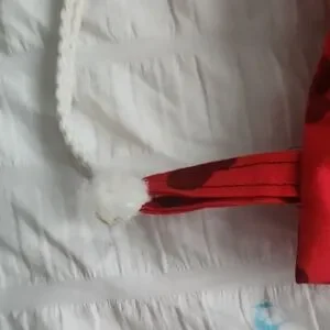 Stylish red drawstring backpack featuring a unique black pattern. Perfect for casual outings and daily use.