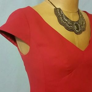 Fully lined crepe dress, back pleat. Perfect for Valentines day. GREAT FRONT BUST DETAILS. cap sleeve, beautiful fit.#100