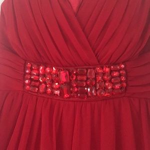 Red A line flowy party dress!! Decorative rhinestones below the chest. ONLY WORN ONCE!