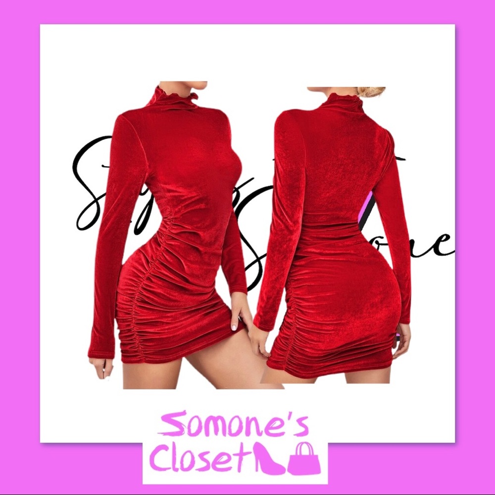 King sleeve, red, velvet dress