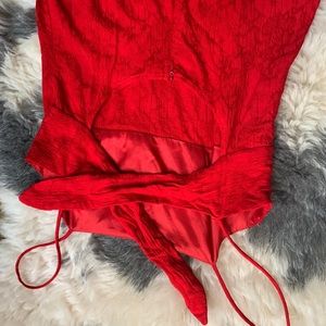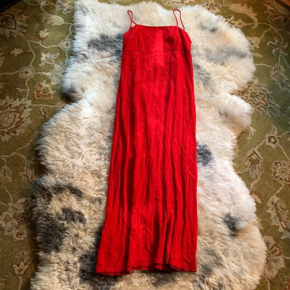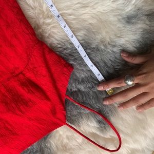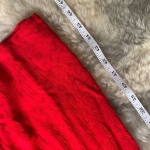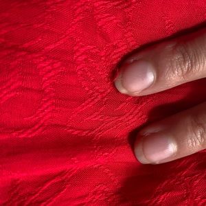 Red Evening Dress, Rayon, Dressbarn, Size 8 but fits like small, 47” In long, Ties in back, about 15” From Pit to Pit laying flat, bright red, floral embroidery all over dress in same red color, oriental vibes.