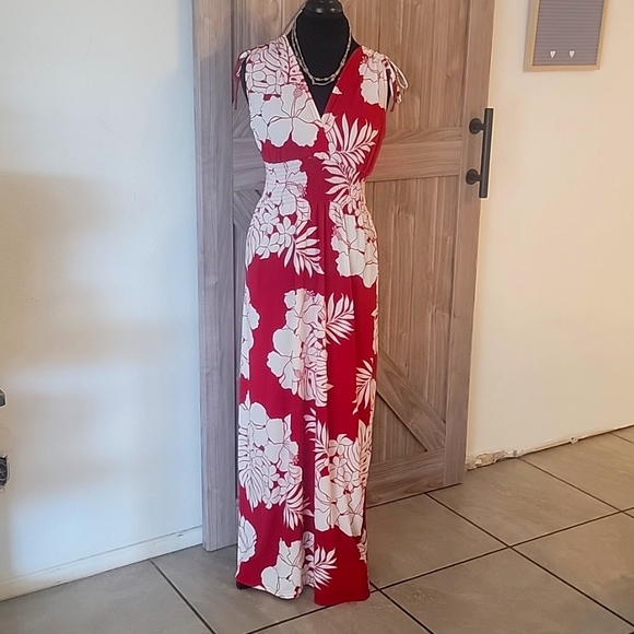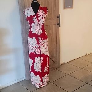 Red Maxi Hibiscus Women's Dress no tag on dress. Should fit Medium to Large Tall Lady. I'm only 5'1 and Dress is a little long for me.