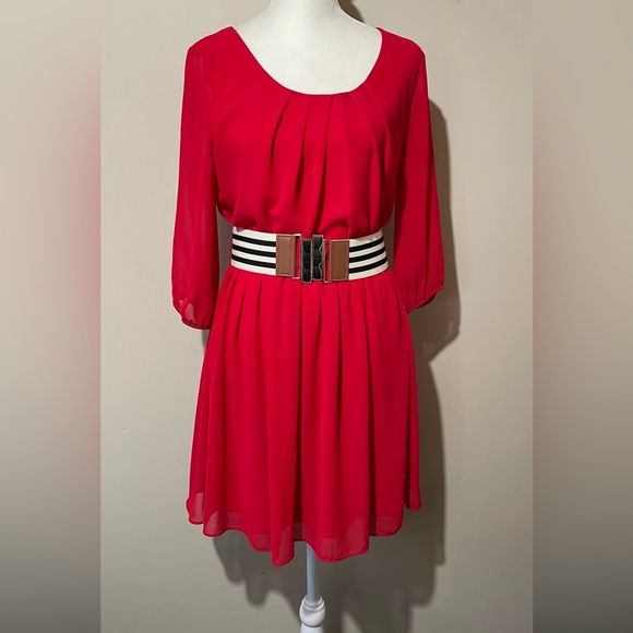 This is a dress with 3/4 sleeves and is a size S. It has elastic at the waist and is fully lined, except for the sleeves.