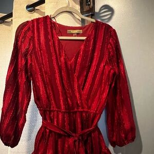 Selling this really pretty stretchy red dress that’s only been worn once and is in fantastic condition. It has a tie around the waist and is 46” in length. Size 8.