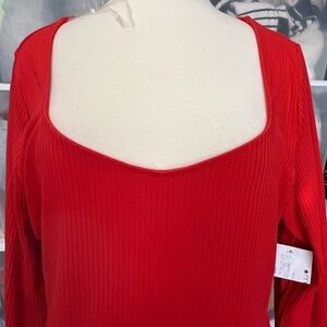 Beautiful bright red dresss with ribbing. Sweetheart neckline.