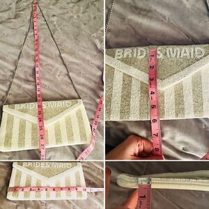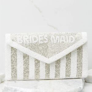 Red Dress Boutique Be My Bridesmaid White And Silver Beaded Clutch Chain Crossbody One Size. White silver beaded clutch. Glass-beaded design, magnetic snap closure, one slip pocket, and hidden chain adds a 21.5" drop to hang the bag from shoulder or use crossbody. Measures 6" x 10.5" according to mftr. See measurements photo for exact measurements.
