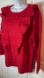 See and Be Seen Fire Away Ruby Red Sweater Ruffle Front Metallic Trim Medium. Ruby red ruffle sweater, Cute top. Scoop neckline, ruffles around bust, cable knit detail on front. Metallic trim on ruffle. 45% Polyester, 25% Nylon, 20% Acrylic, 10% Wool. Hand Wash Cold. Unlined.
