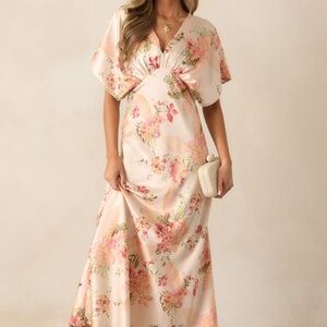 Red Dress Frames Of Bliss Beige Floral Maxi Dress Size SS / Beige