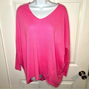 Red Dress Boutique Miracle Brand I’ll Wait For You Lightweight Dolman knit Sweater Top Bubblegum Pink Size M/L. Long dolman sleeves. Drop shoulder. VNeck sweater. Very lightweight. Cotton Viscose Angota blend - super soft knit fabric. In between top and sweater so easily tucked in front. Longer in back. Relaxed oversized fit. Long enough for leggings to cover bottom with normal torso but see measurements for sure. NWT
