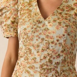 Red Dress You're The One Honey Floral Puff Sleeve Mini Dress Size LL / Gold