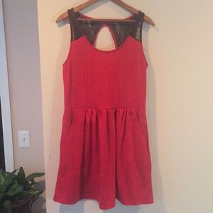 Red dress with black lace detailing on back. It has pockets!! Size large. Purchased from Lord and Taylor.