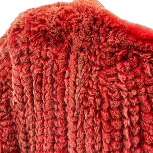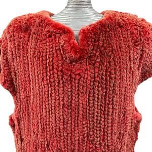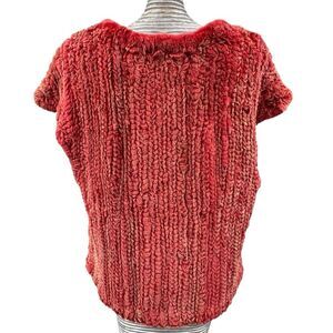 Red Dyed Knitted Rex Rabbit Genuine Fur Sweater Short Sleeve Cozy Luxury