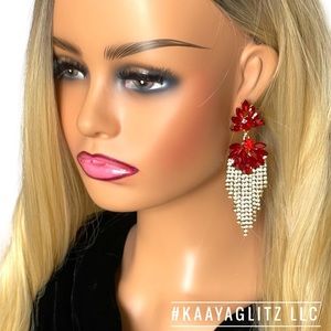 Stunning Large Red Rhinestones Tassel Dangle Earrings!