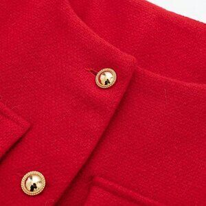 Red Elegant Women's Casual Tweed Jacket Decorated Long Sleeves Coat
