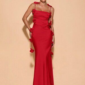 Red Elegant Womens Floral Backless Spaghetti Strap Draped Neck maxi Dress