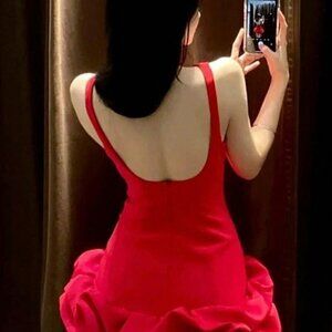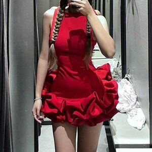 Red Elegant Women's Hem Mini Tank Sleeveless Round Neck Slim Dress