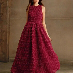 Red Elegant Women's Rose Floral Embellished Sleeveless Woven Formal Dress