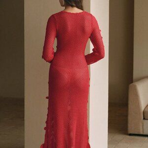 Red Elegant Women's Sequined Crochet Long-Sleeve Dress