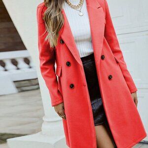 Red Elegant Women's Turndown Collar Long Sleeve Double-Breasted Knitted Coat