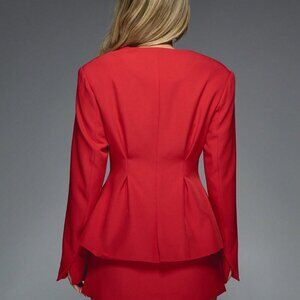 Red Elegant Women's Valentine's Day Collarless Jacket