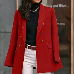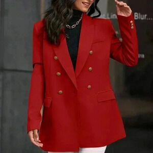 Red Elegant Women's work chic Lapel Neck Double Breasted Blazer