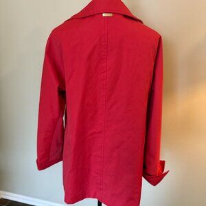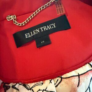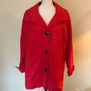 Red Ellen Tracy Trench Coat Jacket With Big Buttons and Floral Lining | Large