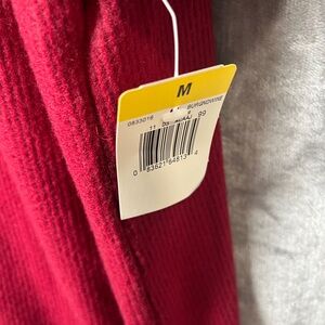 Elegant red dress with floral embroidery. Features button-up front and long sleeves.
