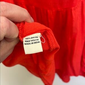 This vibrant red tank features intricate embroidery below the neckline, adding a touch of elegance to its relaxed fit. The light and airy fabric makes it perfect for warm weather, while the bold color and decorative details offer a stylish, bohemian flair.