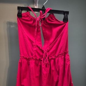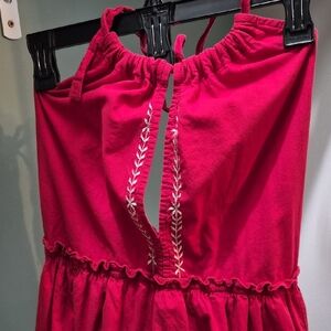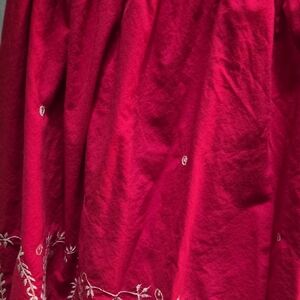 Chic red dress with delicate white embroidery. Perfect for casual wear. Minor fade, couple of pulled threads. LOVE this dress but gotta clear out the closet.