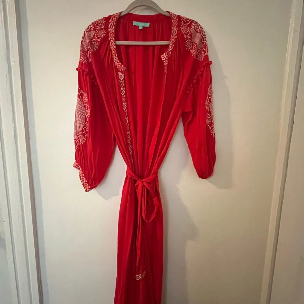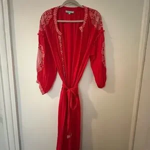 Red Embroidered Kimono Robe