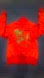 Stylish red jacket with intricate embroidery. Valfre KNOCK OFF. Don’t worry be happy. Dragon skeleton knife fight. Perfect for adding a bold touch to any outfit. No fabric or size labels